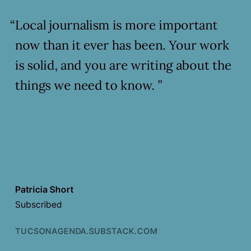 We help Tucsonans understand local political machinations, so our readers - our fellow voters - can make informed decisions, show up to town halls, or otherwise agitate for what matters most to them, whether it’s advocating for policies or just voting them out.