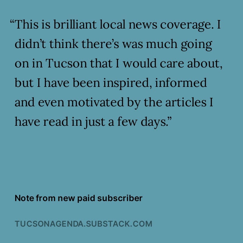 Well, the Tucson Agenda is here to help. It’s run by Curt Prendergast and Joe Ferguson, two longtime local reporters who know what they’re talking about. We launched the Tucson Agenda in July as a sister newsletter to the Arizona Agenda.