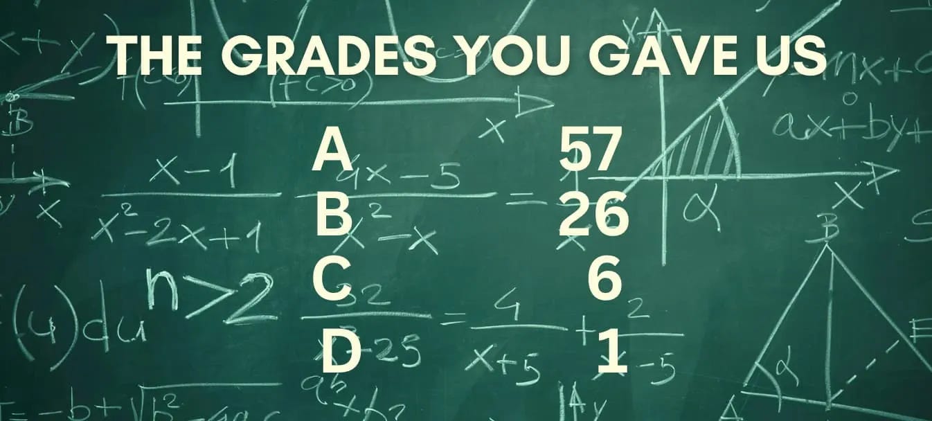 Nearly two-thirds of you gave us an “A” grade and another 29% gave us a “B.” But we did have a few “C” grades in there and one “D.”
