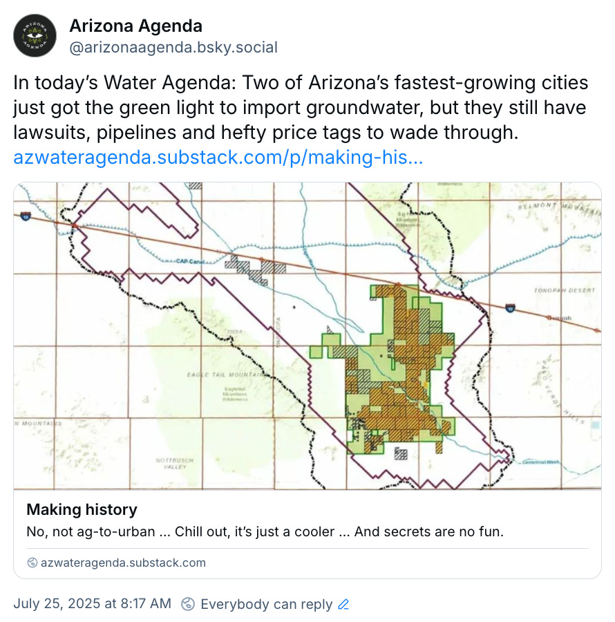 In this week’s edition of the Water Agenda, two fast-growing Arizona cities just got approval for big water transfers to fuel their growth, which is the first time that’s ever been done in Arizona.