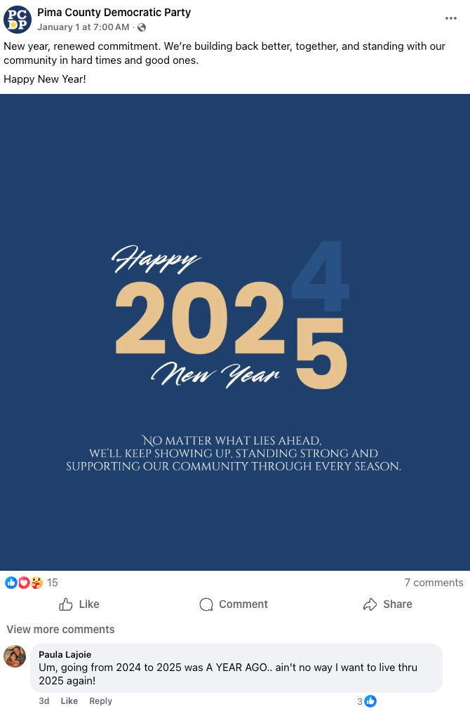 The Pima County Democratic Party got a little backlash on New Year’s Day when they used the wrong graphic in a social media post.