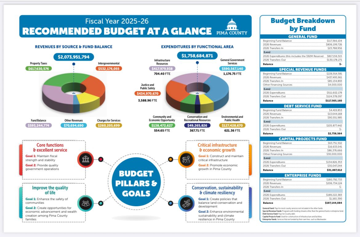 Pima County Administrator Jan Lesher will lay out her budget proposal for supervisors to discuss next week — a proposal that would increase property taxes by about $31 for the average Pima County homeowner, although this figure doesn’t include increases associated with the assessed value of your home going up.