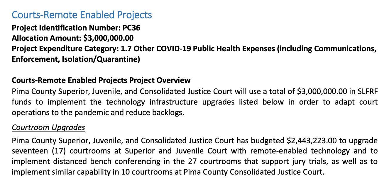 Traffic tickets will cost more: The supervisors will also hear a request from the Pima County Superior Court to increase the court automation and technology fee from $40 to $100. The money will help address the “rapid escalation of technology costs” and the “need for advanced cybersecurity measures.” This fee would jack up the price of civil traffic tickets, divorce records, name changes, and other cases by $60. We’ll note the Biden administration gave the courts $3 million a few years ago to upgrade their courtrooms.