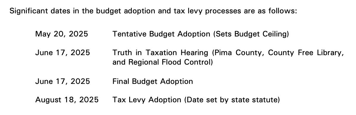 We wrote yesterday that the county administration is asking the Pima County Board of Supervisors to sign off on increasing property taxes rather than slashing departmental budgets.
