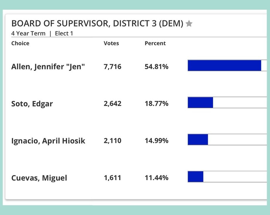 Antes de que pudiera llevar esa filosofía a la Junta de Supervisores, tuvo que enfrentarse a Miguel Cuevas, Edgar Soto y April Hiosik Ignacio en las primarias del 30 de julio. Ahora se enfrentará a la republicana Janet Wittenbraker y al independiente Iman-Utopia Layjou Bah en las elecciones generales de noviembre.
