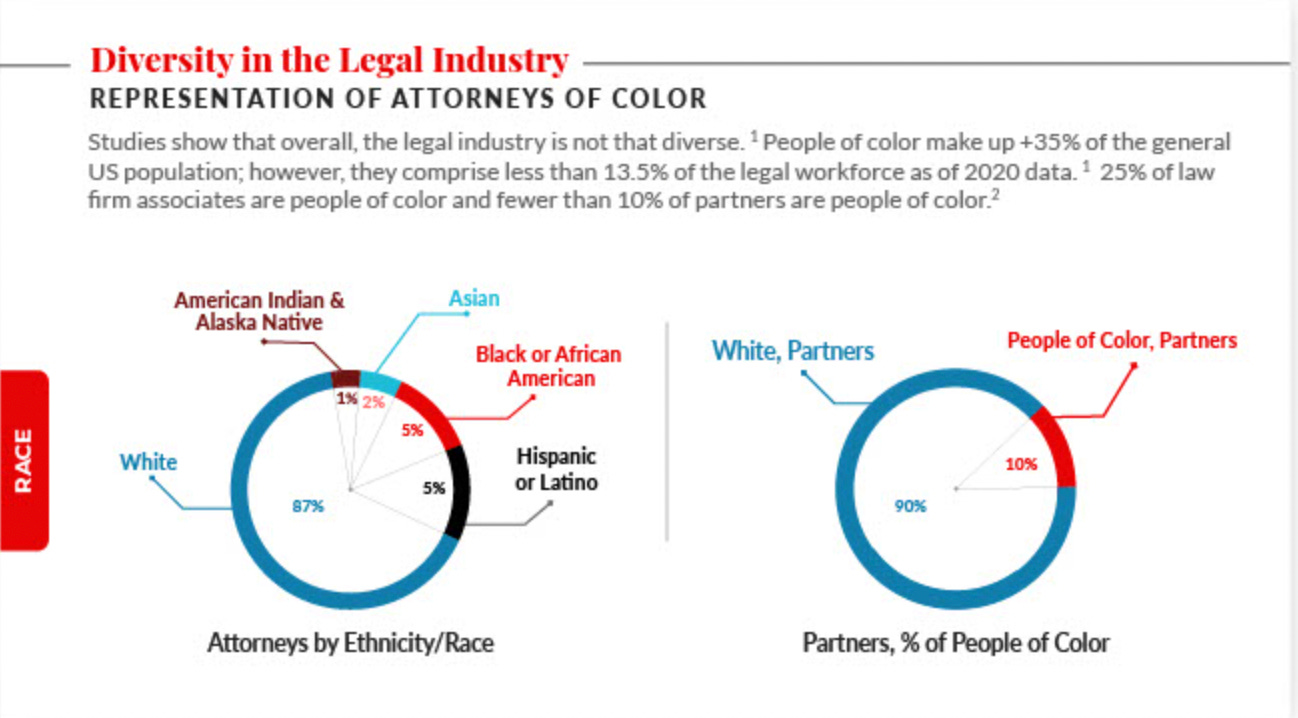 Sólo el 5% de todos los abogados en los EE.UU. se identifican como latinos, y el número es aún menor para las latinas, el 2%.