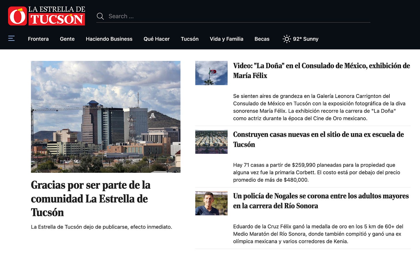 La Estrella de Tucsón era el único periódico en español que presentaba noticias en Tucson y su pérdida se sumó al creciente desierto de noticias en español del país.