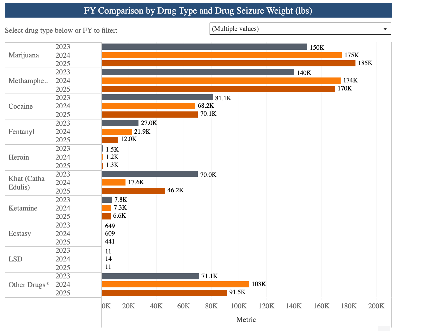 We could also look at drug seizures. CBP statistics show fentanyl seizures have dropped steadily since the middle of former President Joe Biden’s term in 2023, including a big drop during Trump’s first year.