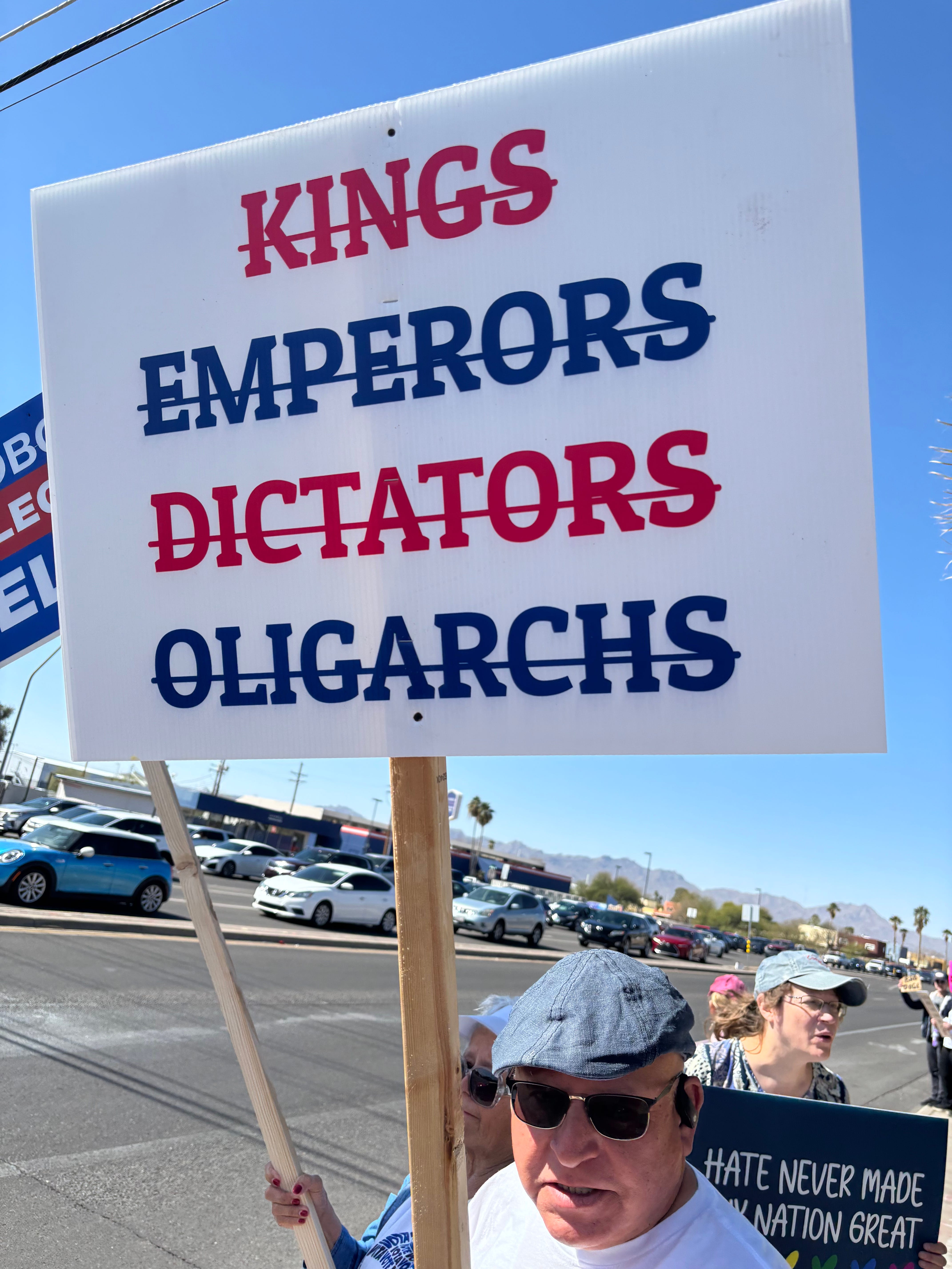 Not happy with Musk: Lots of Tucsonans showed up on Saturday to protest Elon Musk outside a Tesla dealership on Oracle and River, KVOA’s Isabella Fredrickson reports. Protesters said Musk and President Donald Trump were undermining democracy by making cuts to federal departments and pushing tax cuts that would hurt the poor. They carried signs that read “Wake up and smell the fascism” and “Nobody elected Elon,” among others.