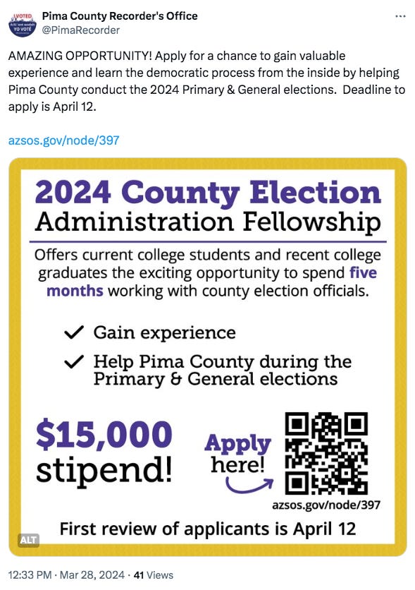 The race is on: The new challenger to Pima County Supervisor Steve Christy is hustling to gather signatures before the April 1 deadline, the Tucson Sentinel’s Jim Nintzel reports. Callie Tippett, a Republican who serves on the Vail Unified School District governing board, said she has her “work cut out for me,” but she wants to give voters a choice in who represents them.