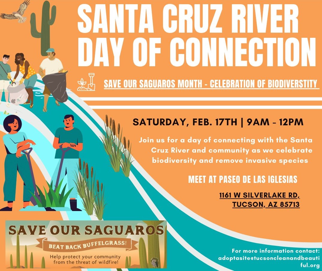 As part of Save our Saguaros month, TCB is hosting a Santa Cruz River restoration and clean up tomorrow from 9 a.m. to noon, to celebrate biodiversity and remove invasive species from the Paseo de Las Iglesias Pima County Restoration Area.
