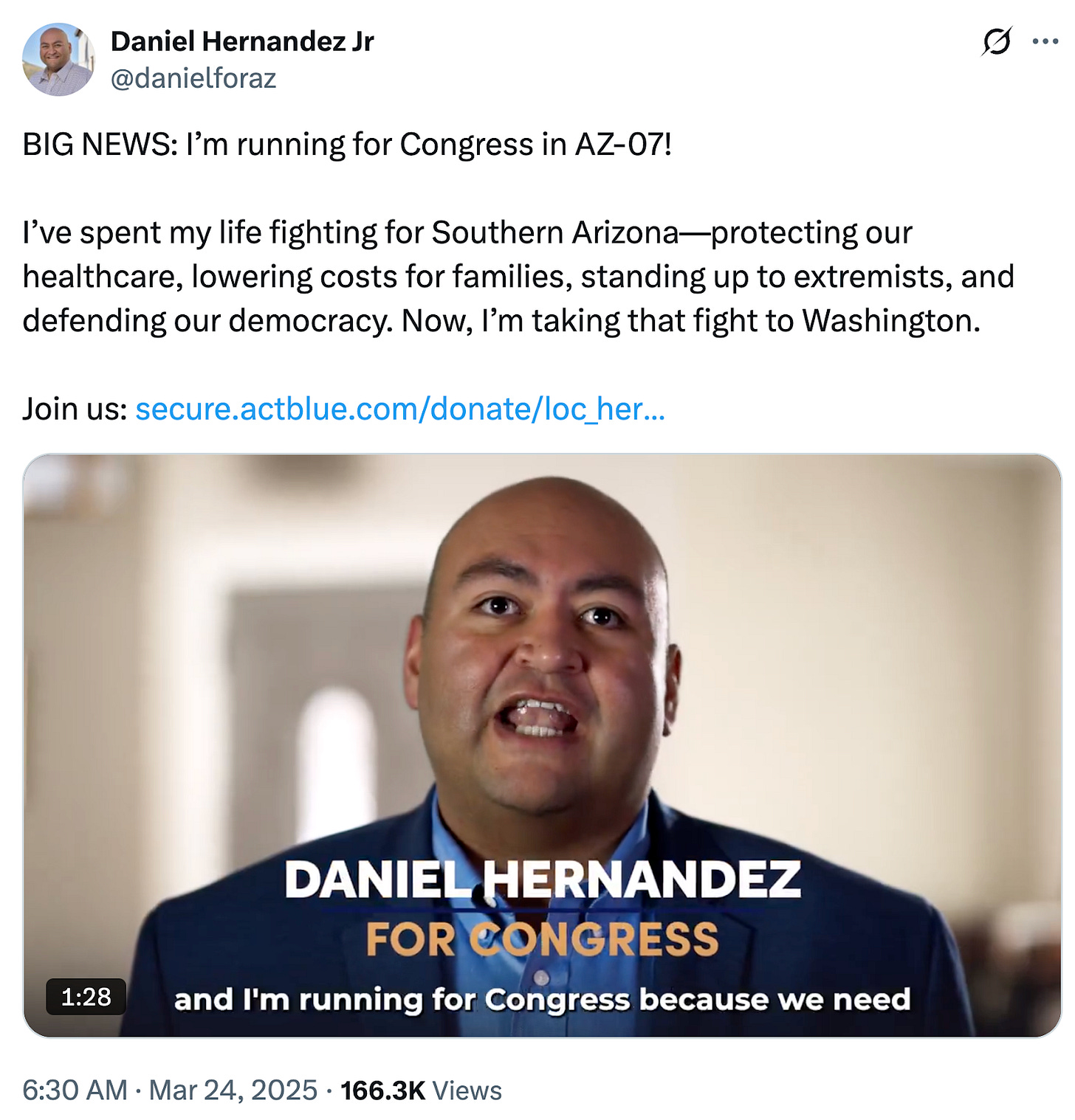 For those trying to read between the lines and wondering why we’re only talking about Hernandez in a sea of serious political figures vying to represent Tucson1 in Congress, it comes down to Federal Election Commission filing deadlines.