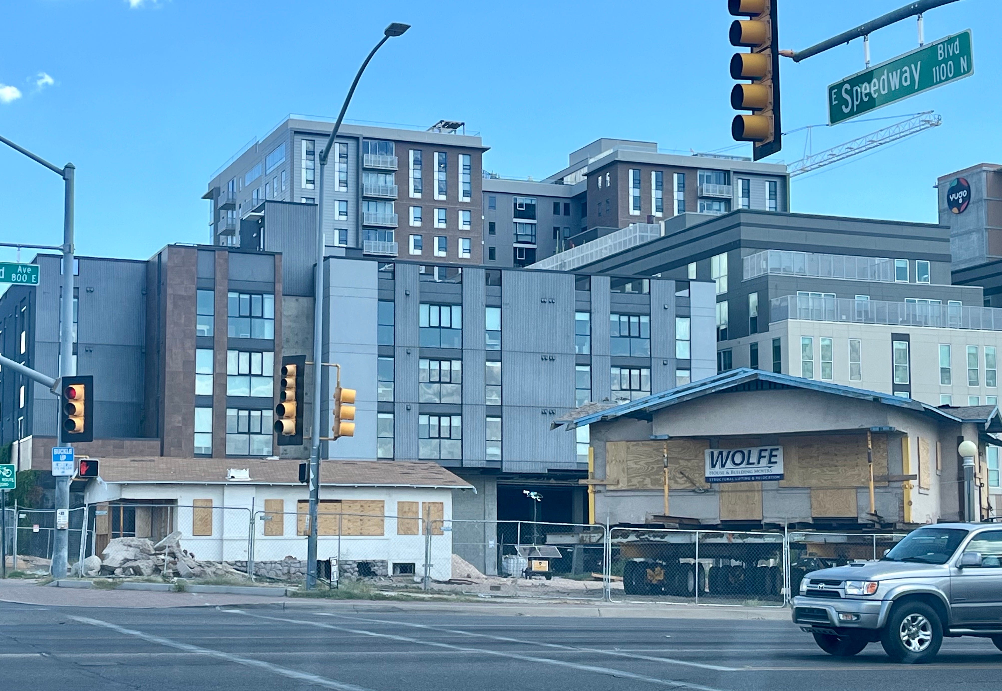 If you’ve driven past the UA during the last few weeks, you’ve probably noticed a handful of houses on wheels at the southeast corner of Speedway and Euclid. This is one of several ongoing projects near campus, many of which involve historic properties.