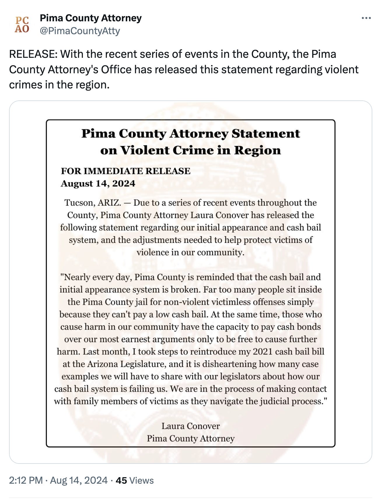 Won’t happen again: After an error by Pima County officials led to thousands of sample ballots being sent to voters with the wrong date for the primary election, county officials started using a checklist system, KVOA’s Isabella Fredrickson reports. Amid a somewhat tense discussion among the county supervisors at their meeting Tuesday, Pima County Elections Director Constance Hargrove explained that the checklist will ensure “every step of the proofing process is completed thoroughly.”