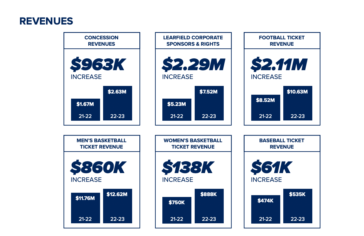 In the 2023 fiscal year, athletics borrowed $32 million from the university and spent almost that same amount on salaries, with $31 million going towards payroll.