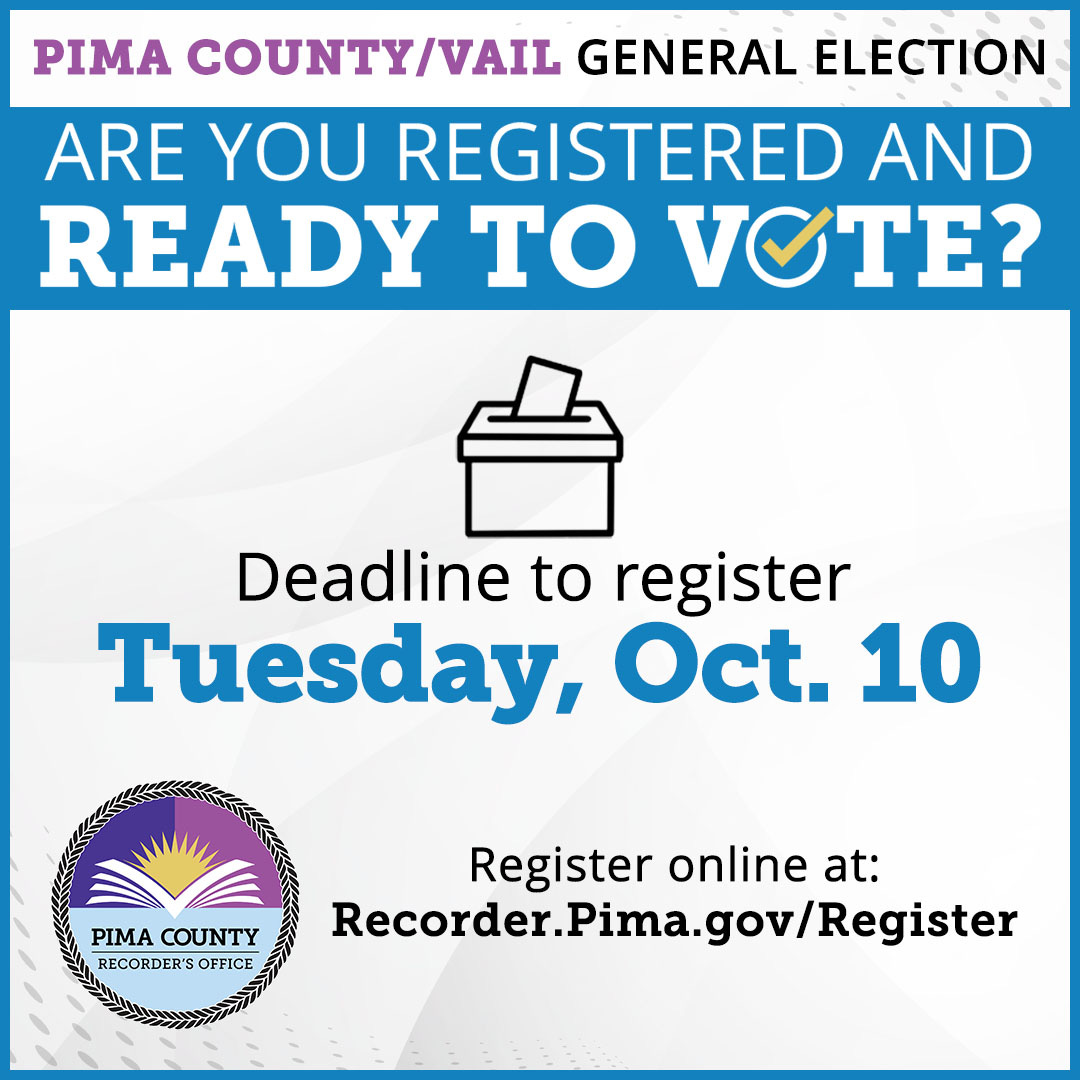 Get out the vote: Today is the last day to register to vote for next month’s general election, the Arizona Daily Star’s Nicole Ludden writes. All ballots will be mailed out by Wednesday. The last day to put your ballots in the mail is Oct. 31, but drop-off locations will be open from Oct. 11 through Nov. 6. Replacement ballot centers and drop-off locations are available from 6 a.m. to 7 p.m. on Election Day.