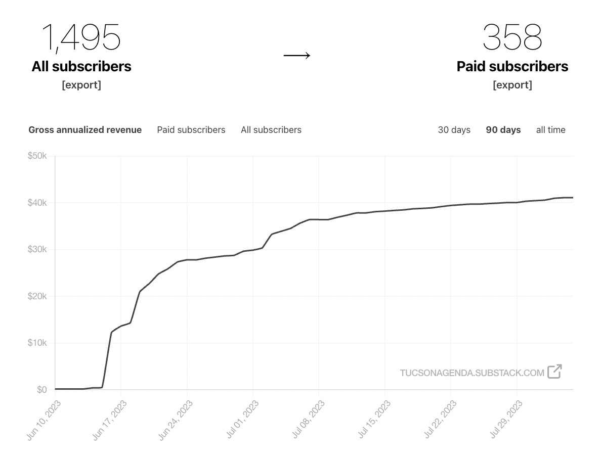 You really came through for us. We weren’t sure what to expect when we started the Tucson Agenda, but our paid subscribers have already put us on track for $41,000 in annual revenue.