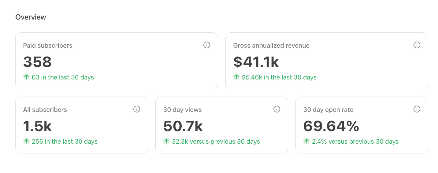 We have almost 1,500 total subscribers, including nearly 360 who pay for their subscriptions. If all our free subscribers decided to pay for their subscriptions today, we could keep doing this forever. More realistically, we need to grow our total subscriber base by about 4X this year and maintain a strong paid-to-free ratio of subscribers, which we think is possible.