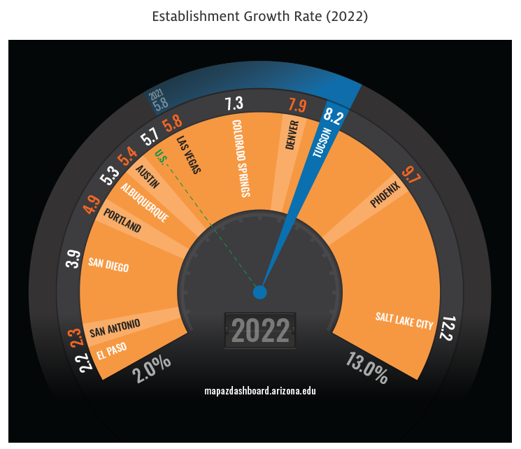 8.2: The percentage growth in new businesses with employees in the Tucson area in 2022.