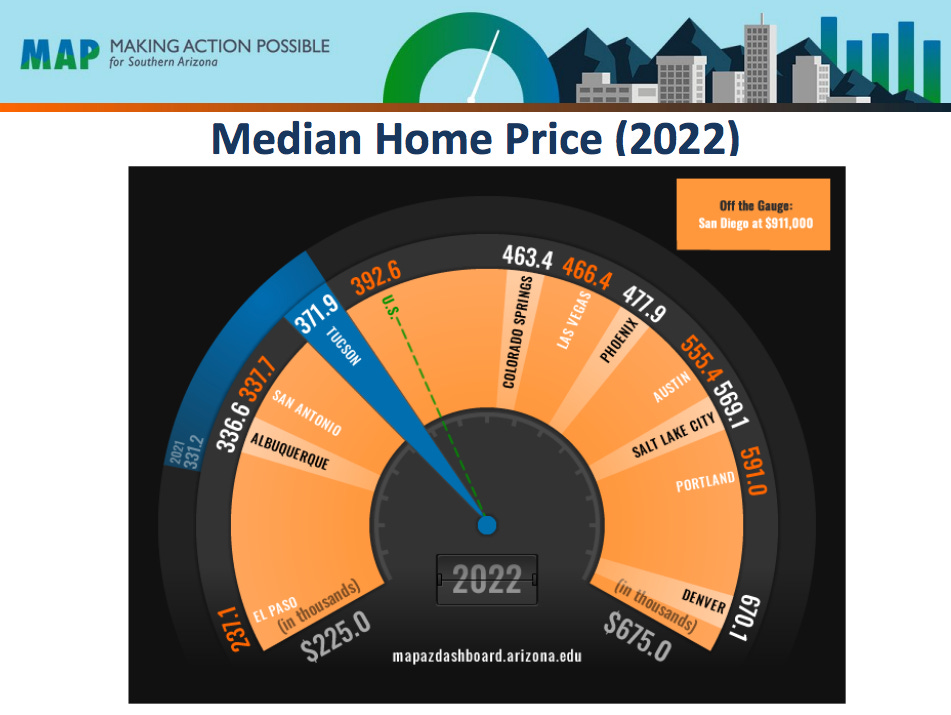 Luckily, we have people in Tucson who track that kind of thing. The Eller College of Management at the University of Arizona compiles data on local housing and a ton of other economic stuff on their Making Action Possible dashboards.