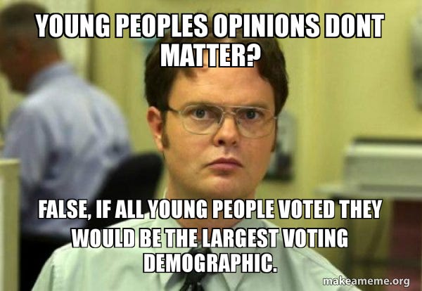 But we think our subscribers are also curious as to what these entities are up to, so we’re going to share the wealth while also showcasing student talent and providing some insight into what young voters think is important.