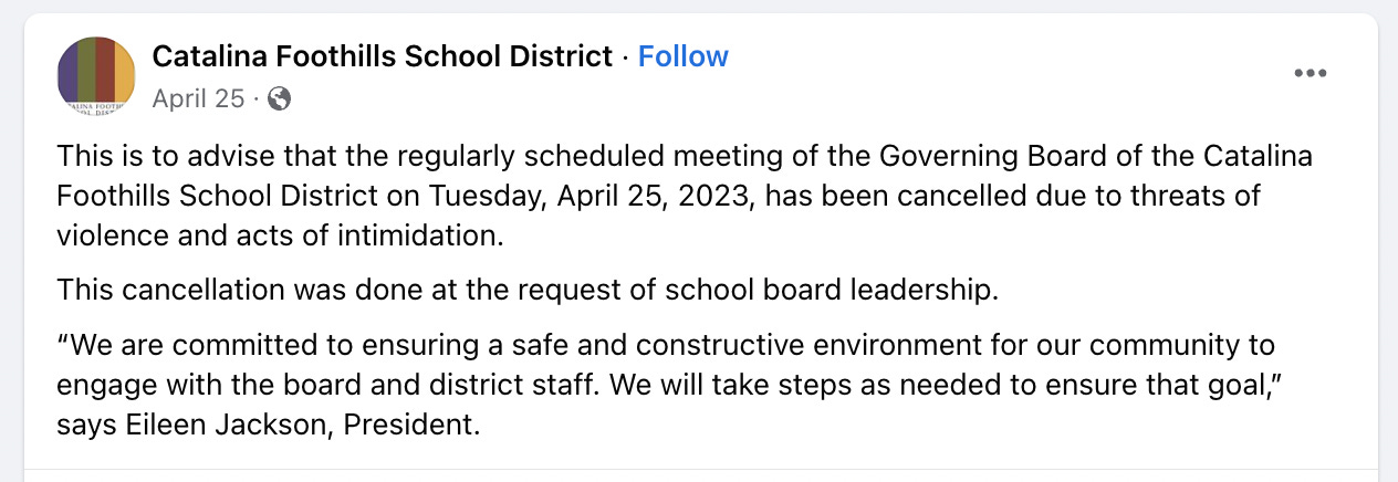 "There are a lot of hot-button issues in education, both in Arizona and nationally. Additionally, issues in education directly affect a majority of Tucson residents but don’t seem to be covered in the news as frequently,” student Sam Parker wrote about her choice to cover Catalina Foothills for the semester. “I think it is important to call attention to topics like attacks on gender identity and protected classes, which are currently subjects of dispute within this school board specifically.”
