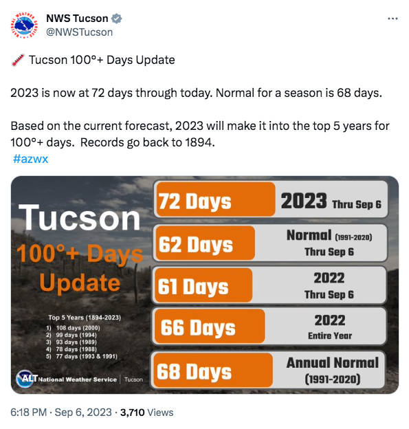 72: The number of days that reached 100-plus degrees in Tucson. A normal year has 68, according to the National Weather Service in Tucson.