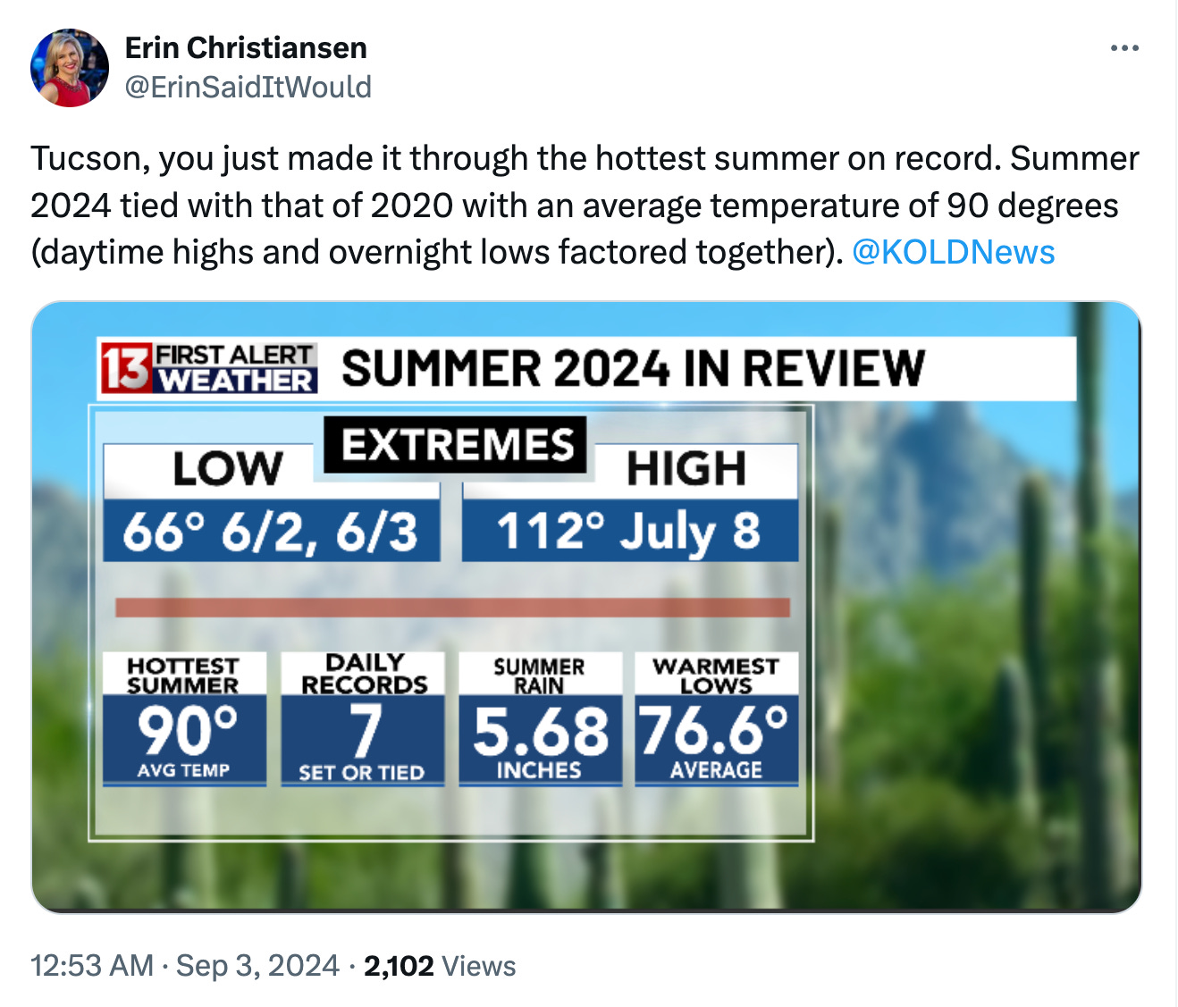 Champing at the bit: New home loans in Southern Arizona are growing at the third-highest rate in the country, Arizona Public Media’s Zachary Ziegler reports. Those loans are up 16.5% over the past year, likely in anticipation of the Federal Reserve cutting interest rates. About half are for new home purchases, while the others are refinanced mortgages or home equity lines of credit.