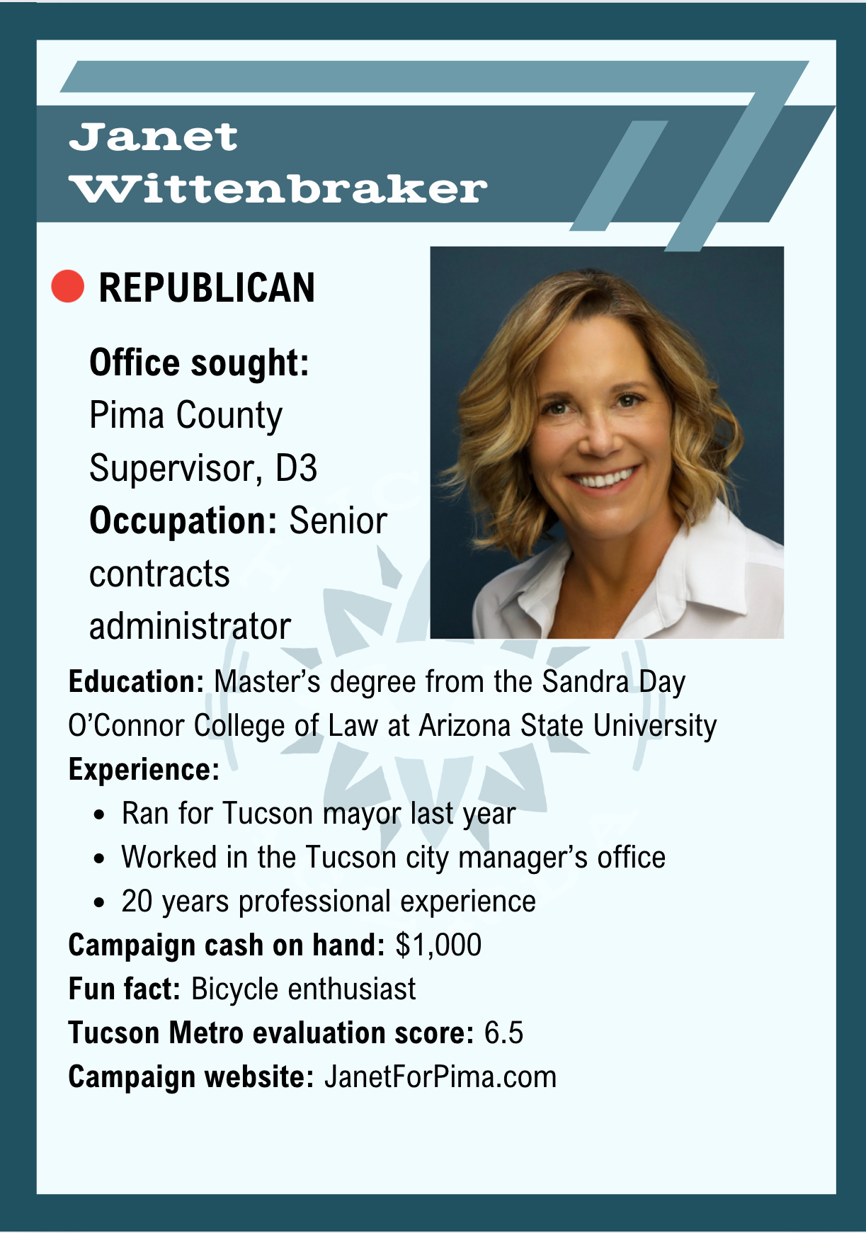 Wittenbraker did say that she believes Pima County’s elections are free and fair (as did Allen and Bah). She encouraged people who questioned election integrity to volunteer as poll observers on Election Day or check signatures.