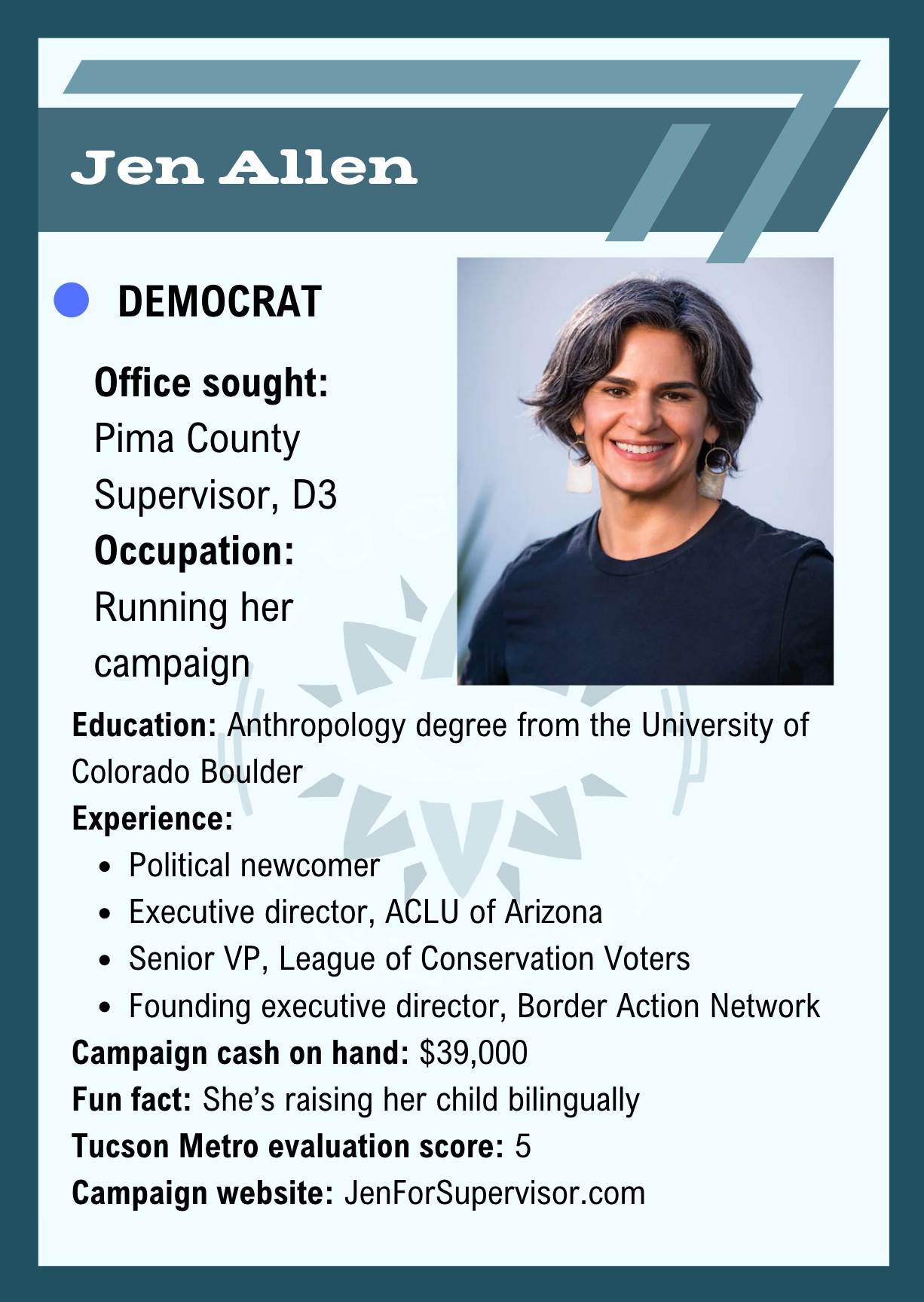 All three candidates are relatively new to politics. For Allen, this is her first run for public office. Wittenbraker popped up on the scene last year when she ran to be mayor of Tucson. Bah ran for Congress in 2020.