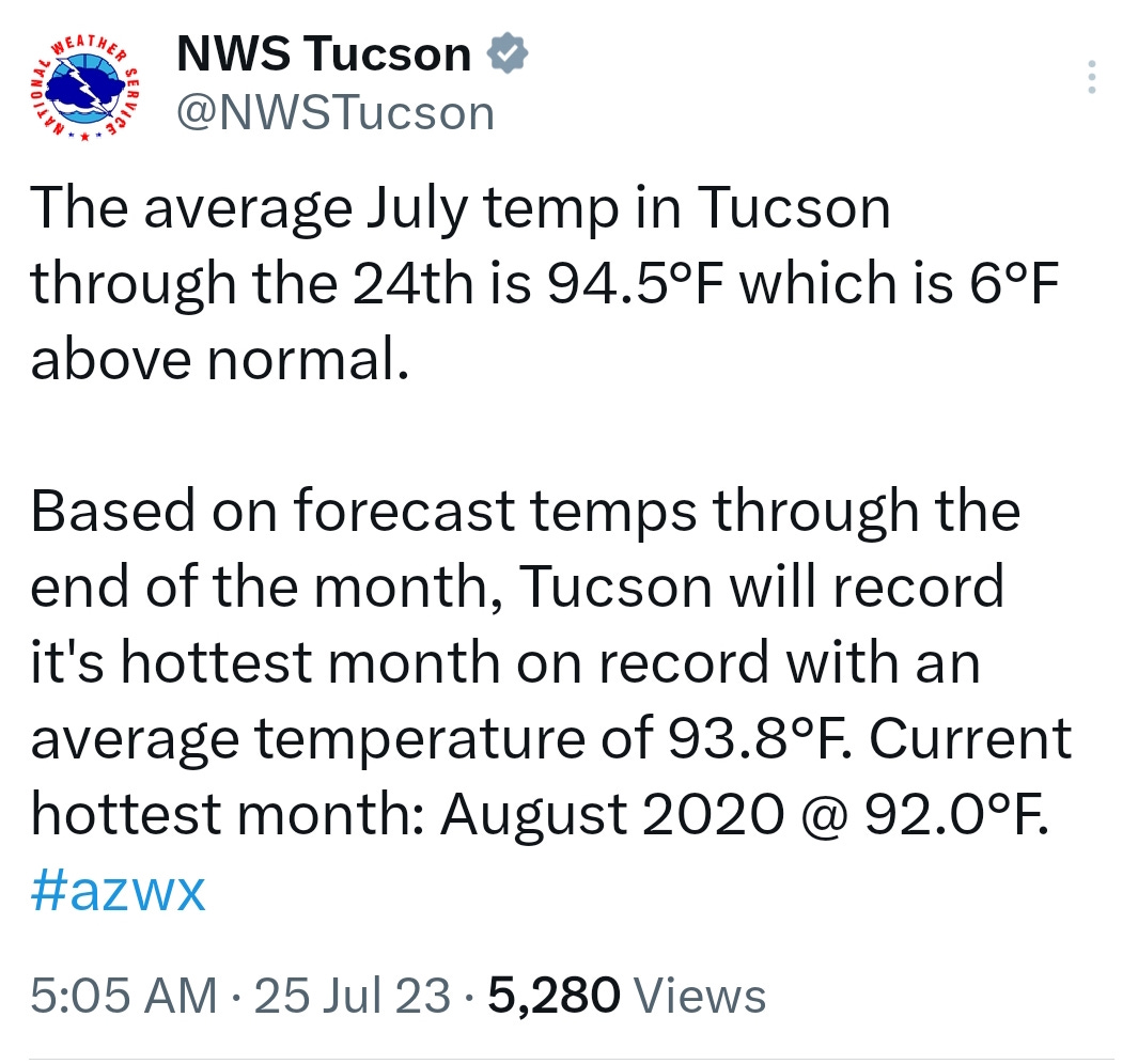 6: The number of degrees above average the temperature has been this July in Tucson.