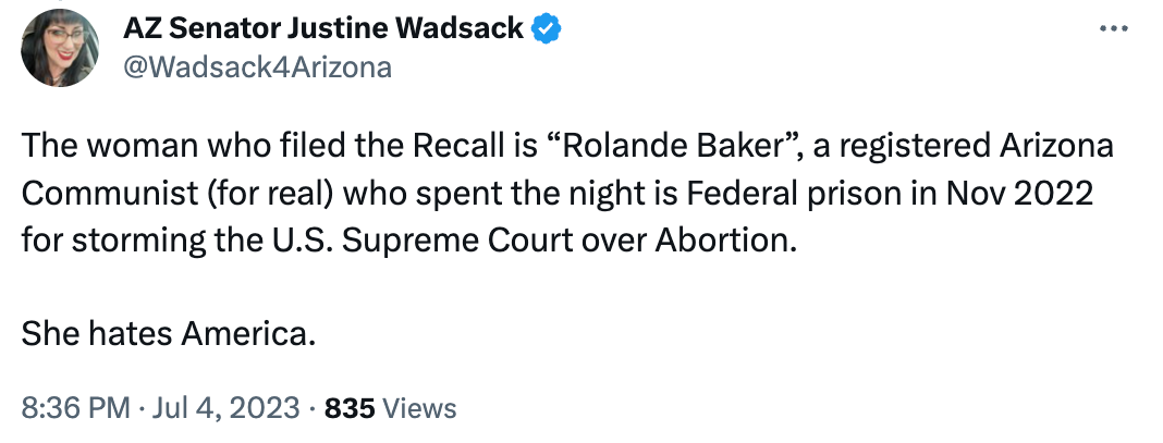 No love lost: Efforts to recall Tucson freshman Republican Sen. Justine Wadsack are becoming contentious, according to the Arizona Mirror’s Jerod MacDonald-Evoy. Volunteers gathering signatures in support of the recall have been “combatively engaged” by Wadsack supporters and the senator has accused one critic of being a “stalker” and another a “registered communist.” Volunteers need to gather 30,981 signatures by Sept. 5 to trigger the recall. Meanwhile former lawmaker Frank Antenori penned an open letter to stick up for a Republican activist who questioned some of Wadsack’s votes. He accused the senator of getting her friends at the local GOP to launch a coordinated online bullying campaign that culminated in a resolution that Antenori said is clearly threatening to expel members for speaking against elected Republicans.