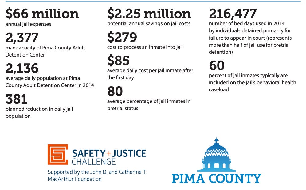 It's too bad the courts and the jail seem to be unable to live up to the goals of the safety and justice challenge, grants provided through the MacArthur Foundation. One of the big goals: to reduce the size of the jail population. In 2019, the Foundation invested $3.3 million to "safely reduce the jail population by 2021." Where are we with that? The courts and jail have been working on this since at least 2015, with few tangible results. https://www.safetyandjusticechallenge.org/wp-content/uploads/2019/01/Pima-County-SJC-Fact-Sheet-2019.docx.pdf