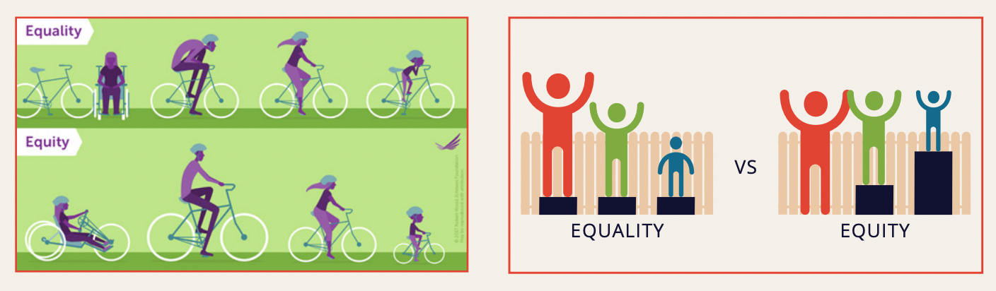 In a nutshell, equality is focused on giving everyone the same opportunities without considering their circumstances. Equity is a need-based approach that acknowledges everyone’s starting position is different and allocates resources accordingly, with the intent of giving everyone a chance to succeed.