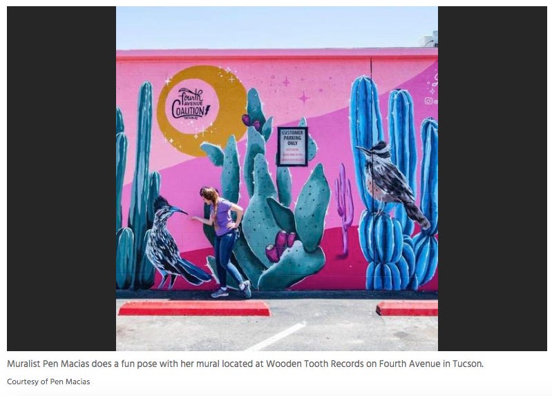 2,300: The square footage of the mural that local artist Pen Macias will start painting next month on the side of Bailey’s Fabrics and Supplies at 1401 N. Bailey Lane, This is Tucson’s Elvia Verdugo reports. All she needs is input from the community. For those interested, they can fill out a survey with questions about special places and memories in the 85705 area.
