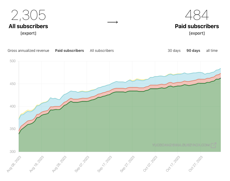 It’s paying off. We now have more than 2,300 subscribers. Thanks to the 484 subscribers who pay for the Tucson Agenda, we’ve reached a milestone: We are halfway to being a financially sustainable news outlet.