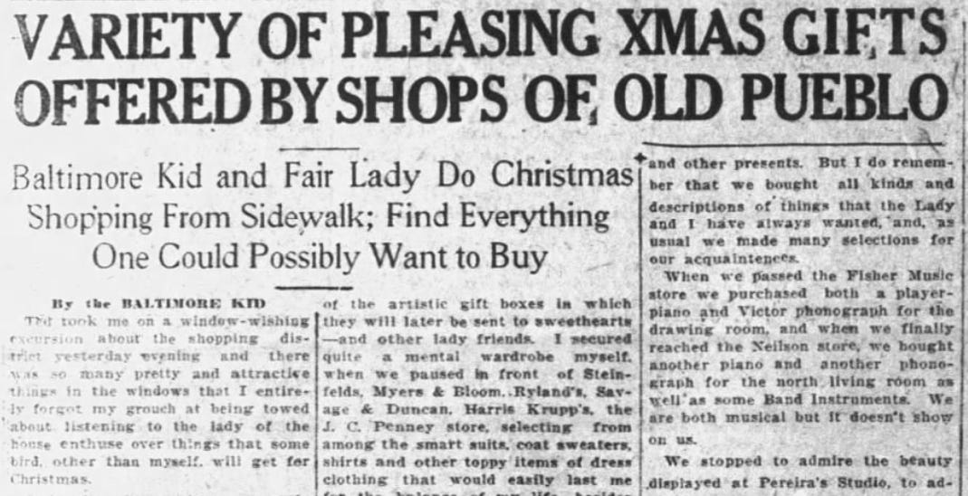 Tucsonans were proud that they were one of the few cities in Arizona where people sang carols in the street. Advertisers bombarded local newspapers with deals on candles, slippers, perfumes, stationery, you name it.