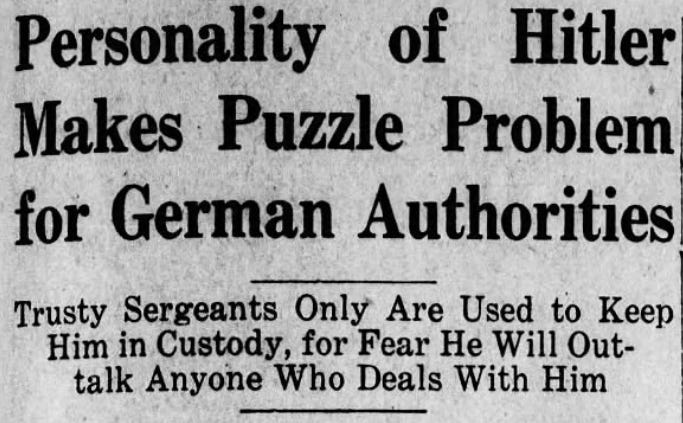 News accounts said Hitler could work his followers into a frenzy, but it wasn’t enough to lay a solid foundation for a political movement. After his arrest, that fanaticism posed a challenge for the people guarding him: Who could be trusted to guard him without succumbing to his maniacal personality?