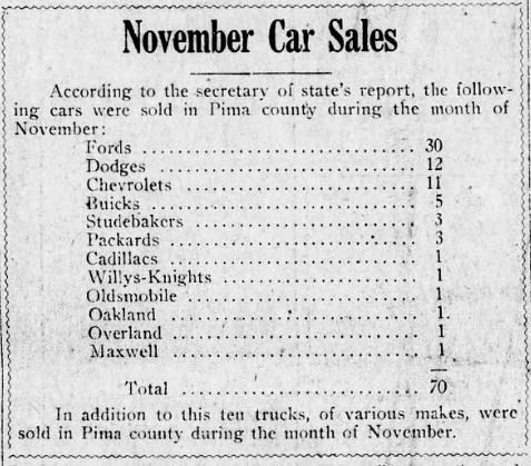 6,000: The number of people who owned cars in Pima County in 1923, the Star reported Dec. 19 of that year.