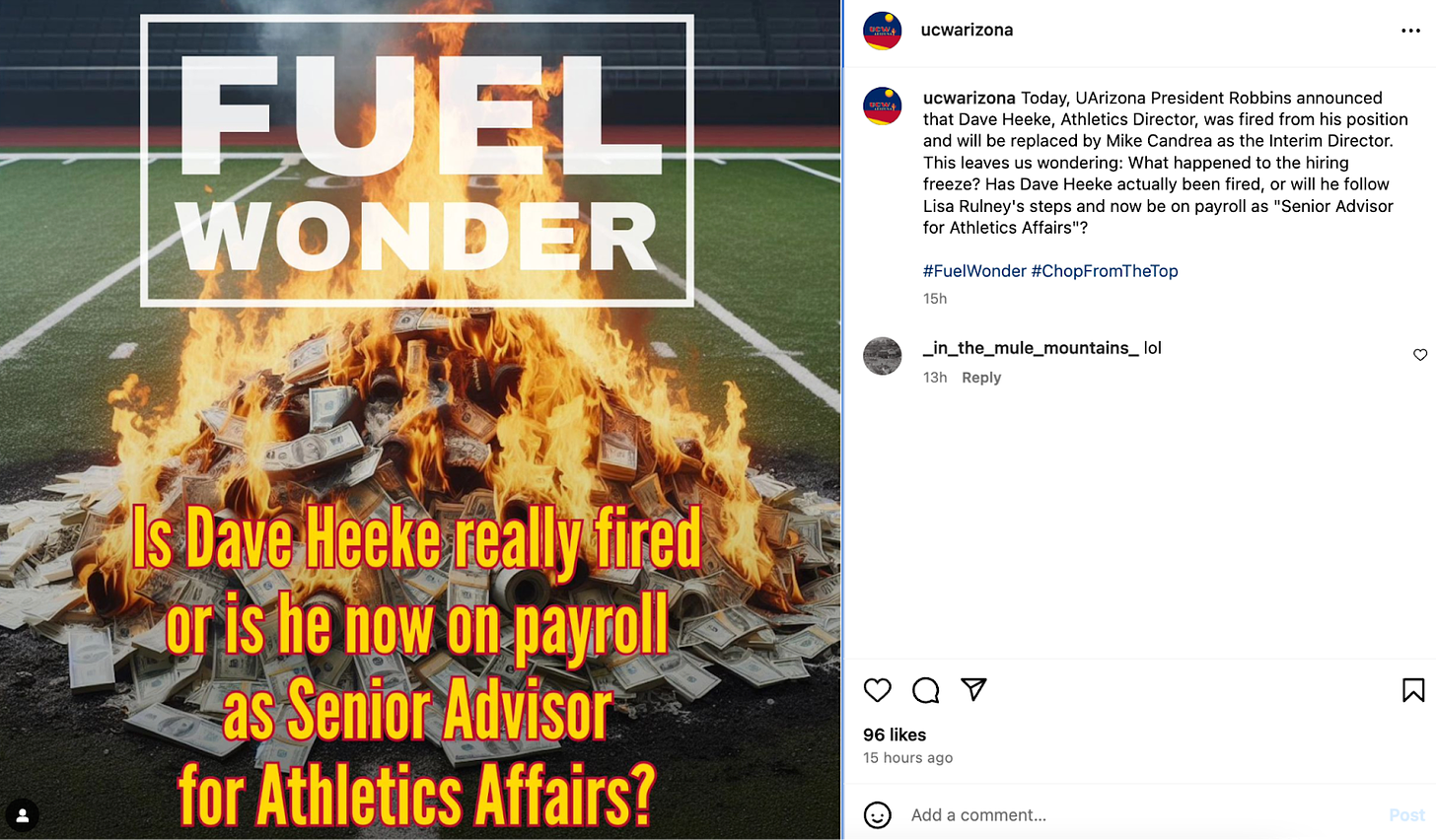 University of Arizona Athletics Director Dave Heeke is on his way out, a casualty of the school’s multimillion dollar financial crisis. But he’s not the only member of the athletics department who took a hit.