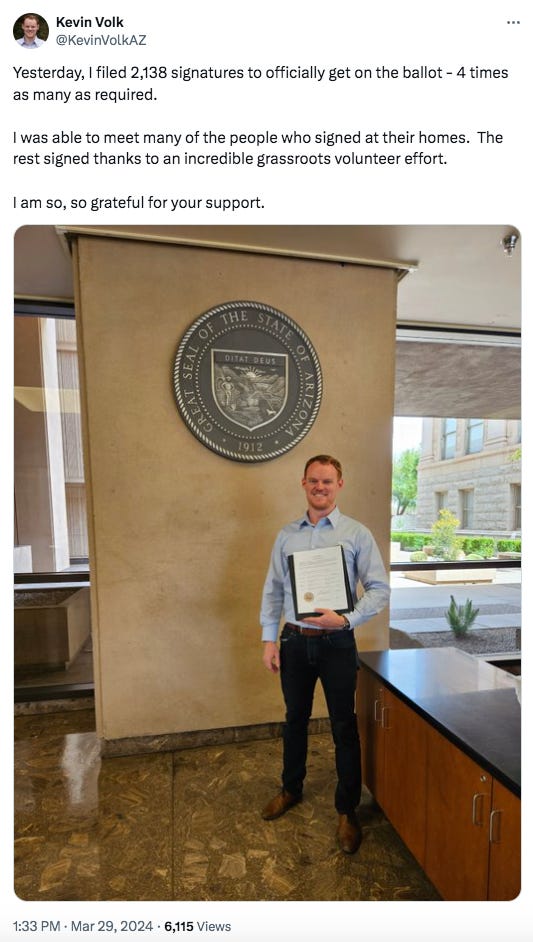 Volk doesn’t have any Democratic competitors for the House seats, so his first real election challenge won’t be until November. In the meantime, if you live in LD17, he says you should expect to meet him knocking on your door over the next few months.
