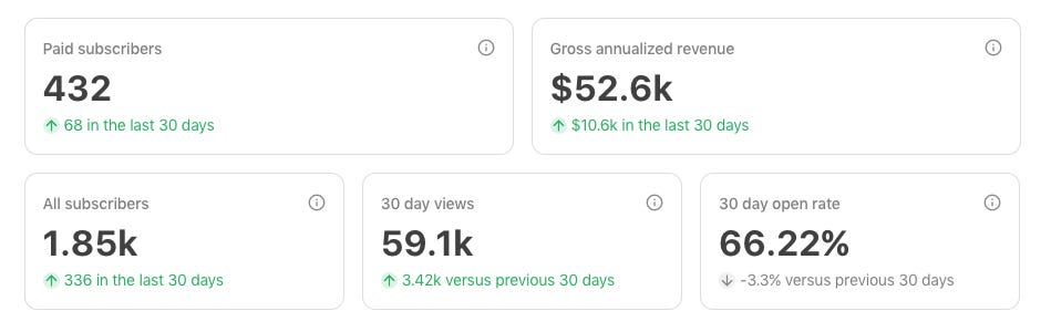 As always, thanks for reading and supporting our still-new venture. We couldn’t do any of this without you, particularly our paid subscribers. You’ve bought us enough time that we can say, with quite a bit of confidence, we’ll be back with another update next month.