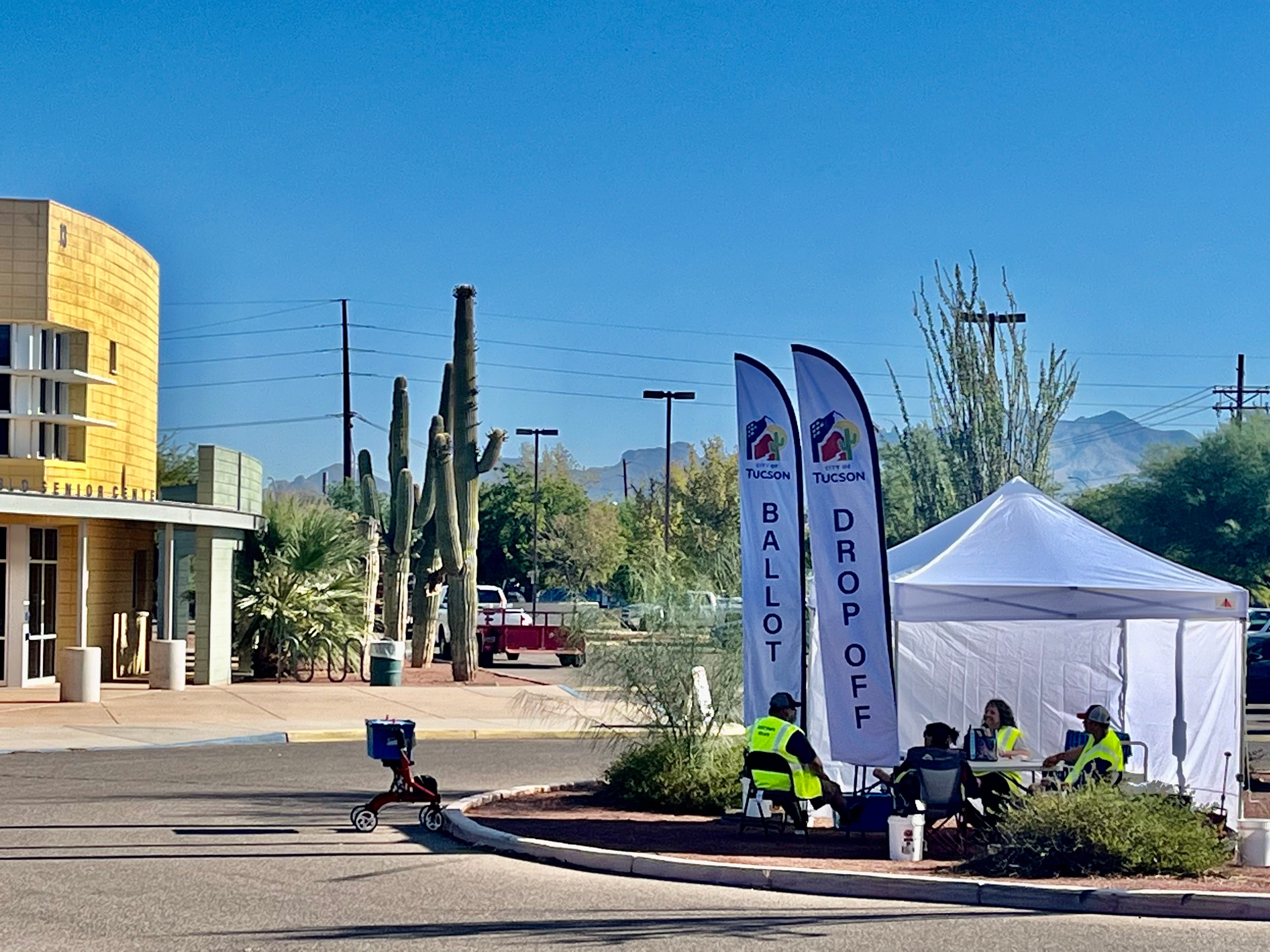 At the Morris K. Udall Park and Recreation Center on the east side, a steady drip of voters walk into the rec center, along with early-risers getting their morning workout.