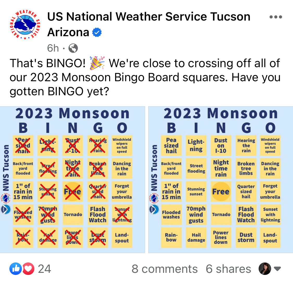 44: The number of Pima County Road Condition update emails Caitlin received after Monday night’s storm, through Tuesday afternoon. This monsoon season may be off to a slow start in terms of rainfall (July saw just 2” compared to the average of 2.21”,) but the storms have left plenty of damage in their wake.