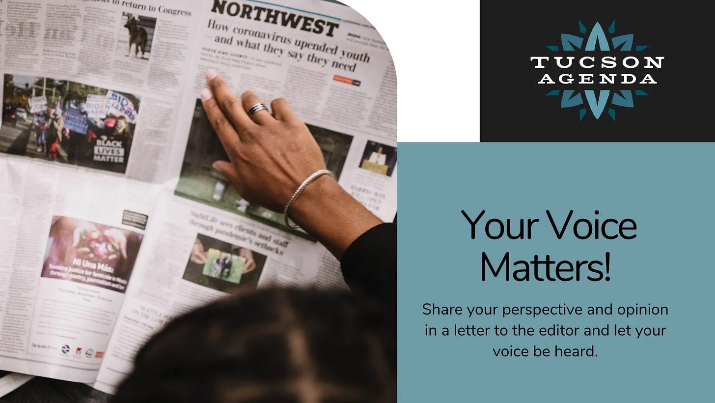 We just wanted to remind you that we want the Tucson Agenda to be a place where readers also have a voice and that’s why we welcome letters to the editor (although we haven’t received any in quite some time.)