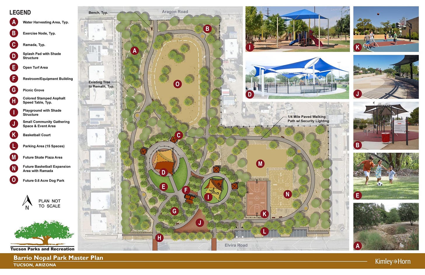 Barrio Nopal Park, which is estimated to cost a little more than $4 million and be completed by next summer, will feature walking paths, a splash pad, playground, shade structures, ramadas, seating, restrooms and more.