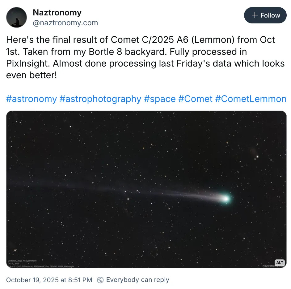 It’s a bird, it’s a plane: It’s a comet that astronomers on Mount Lemmon discovered, which should be visible to the naked eye this week, the Star’s Henry Brean reports. Comet Lemmon (yep, that’s its name) was first spotted by the Catalina Sky Survey in January and it flew by Earth on Monday at a distance of about 55 million miles. It should grow brighter until October 27 and be “backyard visible” for Tucsonans who look toward the Big Dipper before sunset.
